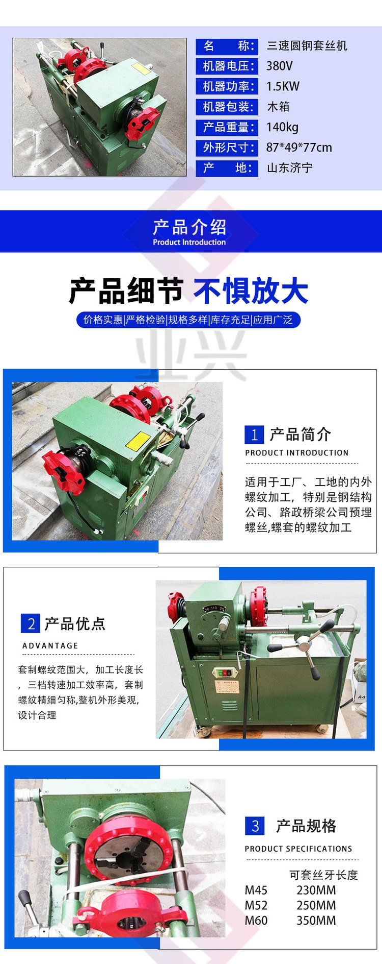大直径圆钢套丝机 开放式板牙钢筋绞丝机 三速车丝机厂家